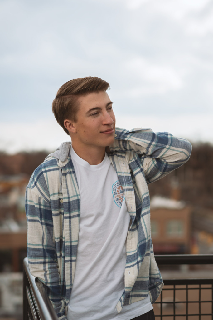 I also encourage my senior clients to bring props, such as sports equipment (Kyle brought a basketball and a golf club to his session to reflect his high school sports), instruments, books, hats, flowers, etc. I always love it when people bring their pets along for some photos! All these things help the photos reflect who you are, what you do, and what you love, at this amazing time of your life. Â