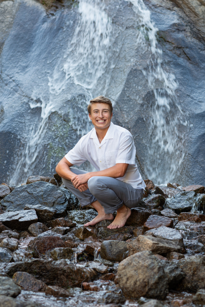 Next we drove and met up with his friend Cowyn and his mom again, and chose another one of my favorite spots – a beautiful waterfall. This location can be tricky. If it hasn’t rained or snowed much (I’m a bit nervous for this summer since there hasn’t been much snow), then not much water will be flowing. If it’s a nice day and on the weekend, you’ll find yourself taking turns with all the other visitors there, and there tend to be a lot. Thankfully I’ve never had any issues with getting the shots we need at this waterfall, and if anyone were to walk into the side of a photo you loved, chances are I can edit them out 🙂